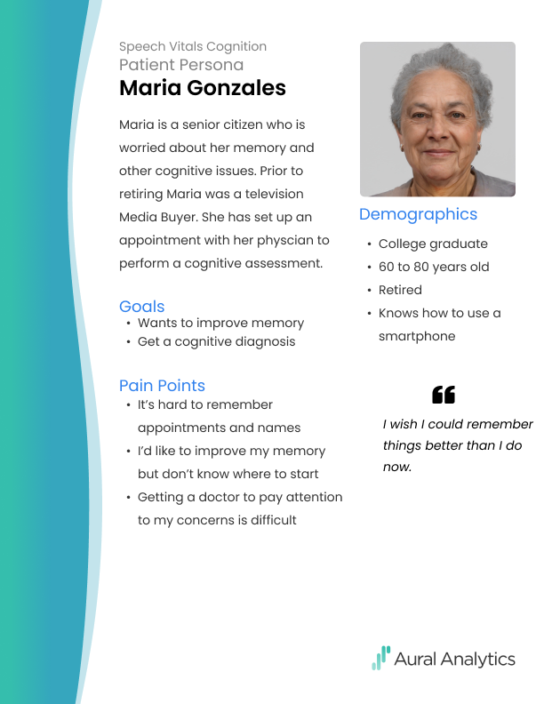 Aural Analytics designed a digital application, Speech Vitals, that paves the way to early detection of neurological degeneration through subtle changes in speech that indicate potential disease.